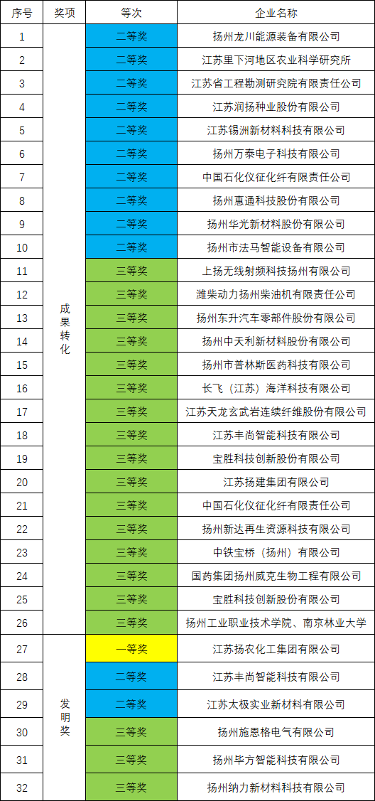 近日,2025年度江苏省科技创新协会科技创新奖拟获奖名单予以公示,全省102项科技创新奖入围,扬州共32个项目入选(成果转化奖26项,发明奖6项)。其中,发明奖扬州一等奖入选1项(全省共3项)。
